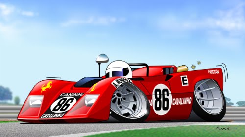 Caricatura do Fórmula Ford Bino nº 15 (motor do Corcel), piloto Angi Munhoz, equipe Motoradio.Angi participou do Campeonato Brasileiro de Fórmula Ford de 1972 e 1973 pela equipe Motoradio terminando em 5º lugar no campeonato de 1973 pilotando um Fórmula Ford Bino de numeral 15.